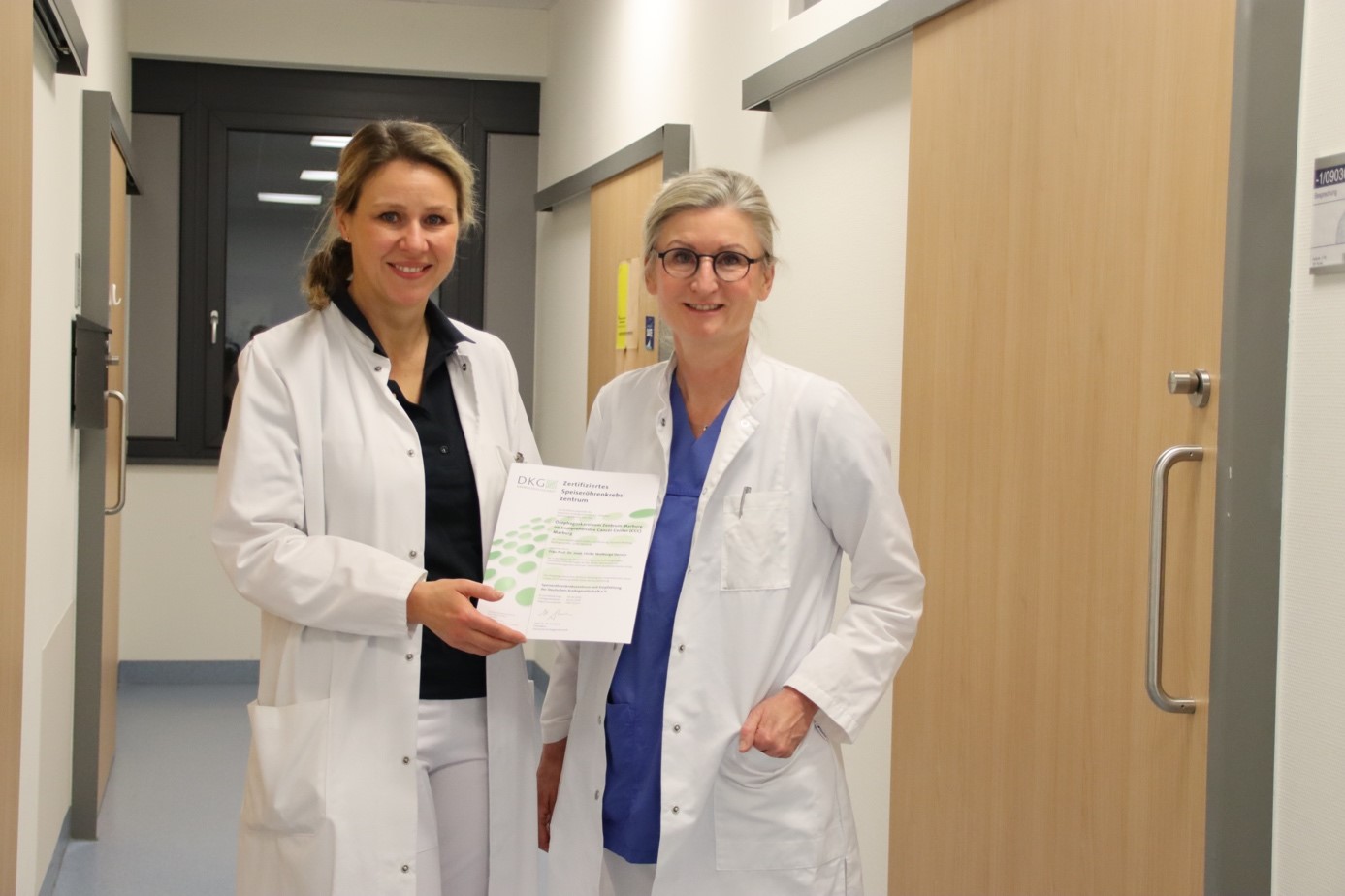 Wir freuen uns sehr über unsere Erstzertifizierung als Ösophaguskarzinom-Zentrum durch die Deutsche Krebsgesellschaft! Wir sind damit das zweite zertifizierte Speiseröhrenkrebs-Zentrum in Hessen. Die Zertifizierung bestätigt unsere hohe Versorgungsqualität, unsere Patienten/innen werden interdisziplinär mit Expertise und Erfahrung behandelt.