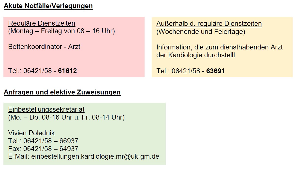 Allgemeine Notfälle: Zentrale Notaufnahme: 06421/58-67962 - Oberarzt